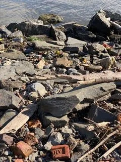 Until I was standing in the water with bricks under my boots, I did not realize how many bricks are along this stretch of the west side of the Hudson.